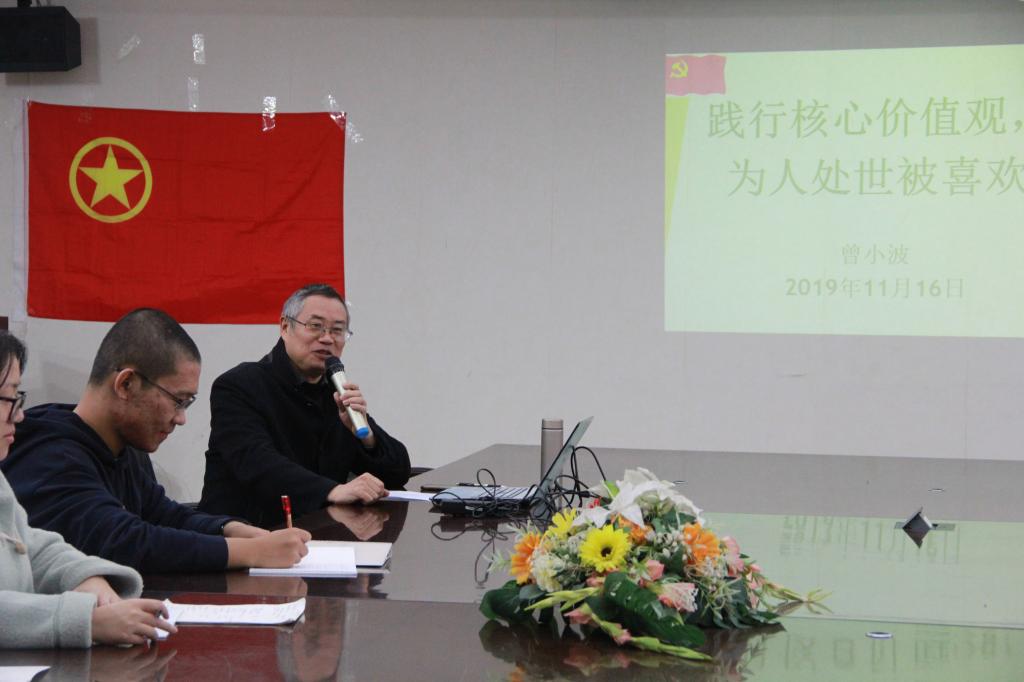 开班仪式结束后,曾小波书记为学员讲授开班第一课“践行核心价值观,为人处世被喜欢”。首先,书记从“青马班”的全称、内涵入手,明确了青年大学生爱国必爱党的政治要求。其次,分别从国家、社会、公民三个层面解读了社会主义核心价值观,并结合自身经历,以乡村振兴为例,传达了十九届四中全会思想,要求学生干部一定要担使命、抓落实。此外,书记还带领学员们共同学习了中央八项规定、四个全面等理论知识。随后,书记分享了自己十多年的工作的经验总结,“做人要让人喜欢,做事要让人放心”,向学员传授了为人处世十八条、做“文化人”四方法、与人交往三法宝以及做事让人放心的两素质、两意识、五能力,教育同学们要有爱心、责任心和上进心。最后,书记对在座学员提出了几点期望:“学会换位思考、学会感恩,做一个有礼貌、有教养的人,做一个忠诚、干净、有担当的人。”