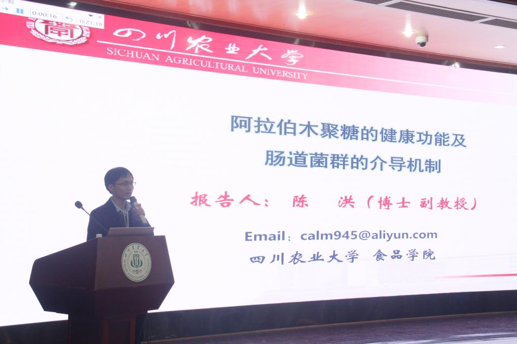 24日上午,中国农业科学院都市农业研究所研究员甘人友从茶叶抗糖尿病,心血管保护活性,减肥活性等方面作《茶叶健康功能研究进展 》报告;南京农业大学胡冰教授就各机制及应用前景为与会人员作《外援补给物理作用食品超分子自组装机制及水凝胶抗菌活性研究》报告;随后,湖北工业大学李述刚教授作《基于微胶囊/糖基化处理卵白蛋白对石榴籽油品质调控策略研究》,该研究详细讲解了从抑制石榴籽油的氧化入手,利用微胶囊和糖基化处理对石榴籽油品质进行调控;江西师范大学李金林副教授以“水产是重要蛋白质来源”引出其研究主题《草鱼汤制备过程中营养及风味的变化》;中国海洋大学唐庆娟教授就卡帕藻抗癌、抗高脂、抗氧化特点分享《卡帕藻降脂减肥的营养功效及分子机制》专题报告;本次专题报告会的最后,tyc5997太阳集团陈洪副教授为全体与会人员带来研究报告《阿拉伯木聚糖的健康功能及肠道菌群的介导机制》,陈洪副教授谦虚地以“抛玉引砖”的比喻开始,讲述了作为谷物主要非淀粉多糖的阿拉伯木聚糖能通过与肠道菌群的相互作用,改善肠道屏障,进而具有有效预防慢性代谢疾病的清理极其相关分子机制。演讲的嘉宾全情投入,精彩纷呈的内容赢得了现场观众热烈的掌声。