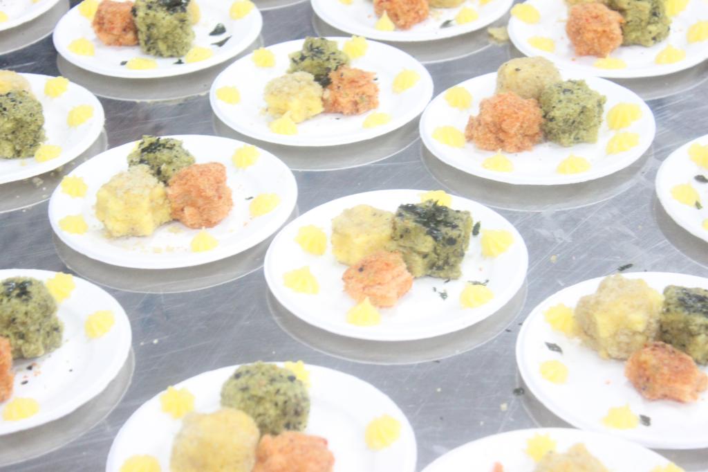 月饼、罗汉饼、泡芙、披萨、鱼烧、蛋卷等鲟鱼创意做法纷纷涌现。鲟鱼罗汉饼以传统手艺为基础、做法简明但不简单,饼皮焦香酥脆;四味鲟鱼披萨口味复合、口感多样、色彩艳丽。不少评委默默“光盘”。除了注重产品味道,参赛团队也将“看脸”充分发挥于鲟鱼加工当中。以鲟鱼松为蕊、水油皮为瓣的鲟鱼桃花饼一出场就引发了现场一片惊叹:“太美了!”;长得像鲤鱼,充满“过年”气息的鲟鱼烧;胖乎乎、圆滚滚,酷似电影《怪兽学院》中“大眼仔”洋槐鲟鱼泡芙……包装也是“颜值”的一部分,鱼传尺素团队将外包装折叠为信封状,并在上面手写祝福语;鱼女无瓜团队在完整包装产品之余,还在餐盘上绘制卡通图案与作品绚丽的色彩呼应,尽显心意。