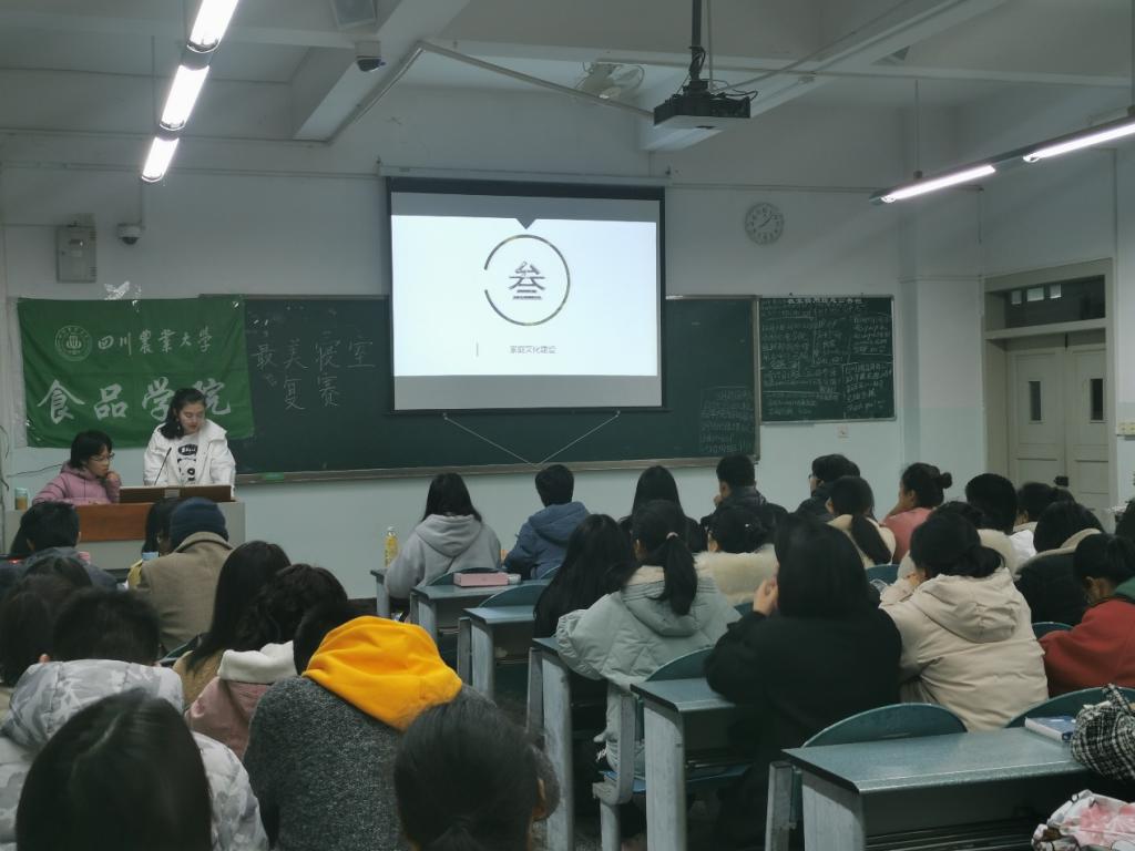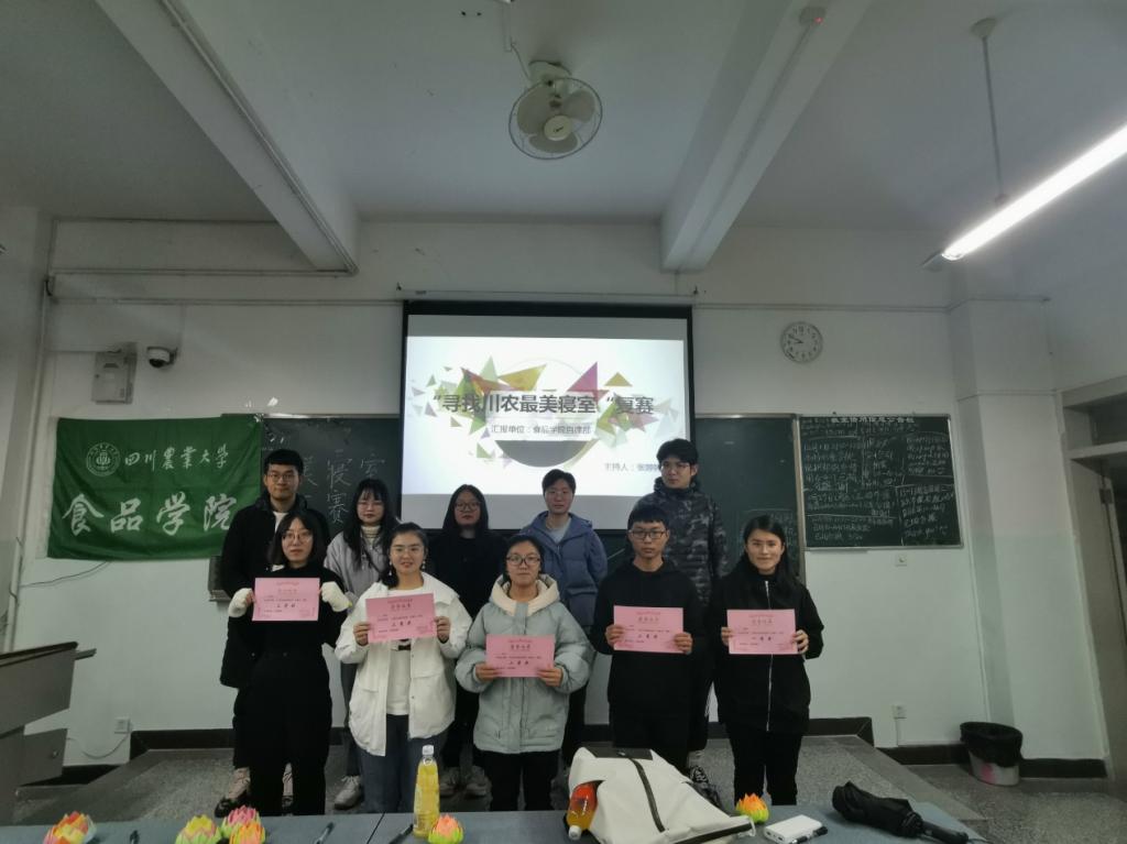 11月30日晚,由食品学院学生会自律部承办的“食品学院—寻找川农最美寝室”答辩会在十教A417顺利举行,出席本次答辩会的嘉宾有:食品学院学生会副主席朱婷钰、食品学院学生团委副书记卢宇咫、食品学院学生办公室副主任臧名洋、食品学院学生会宣传部副部长熊睿婧、文娱部副部长张通越。本次答辩会在一片掌声中拉开序幕。