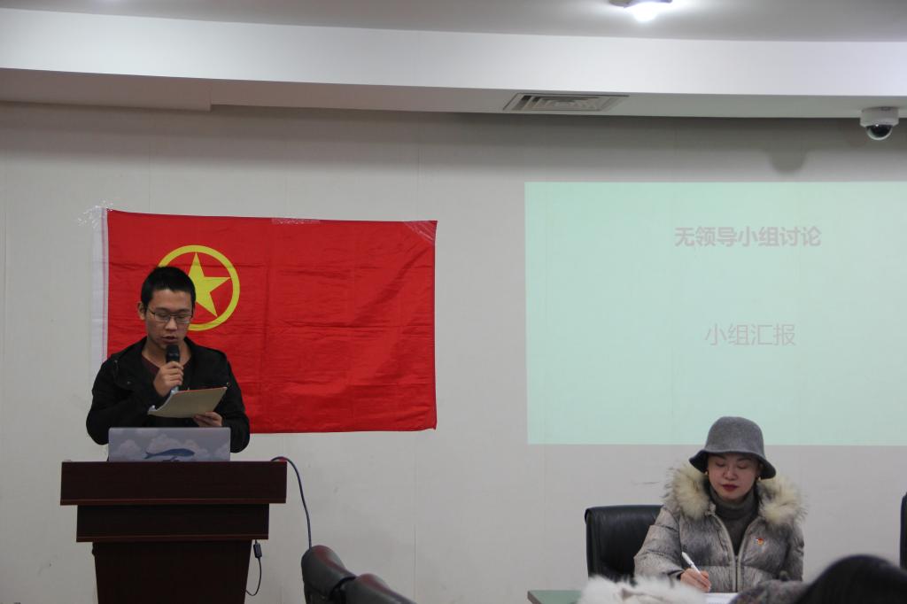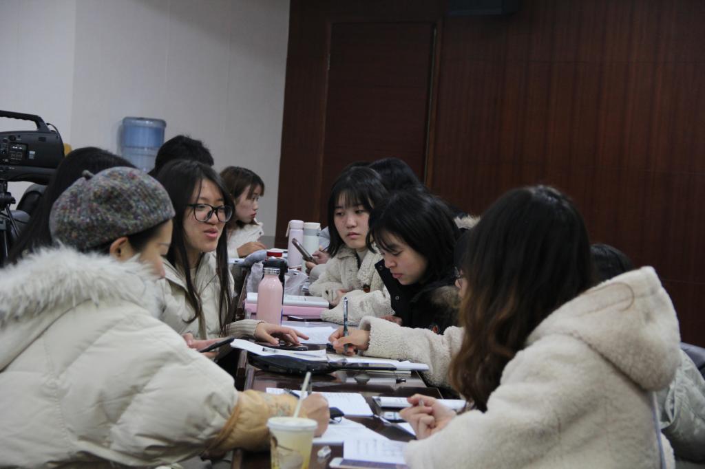 全体起立奏唱国歌毕,邓老师首先向大家介绍此次实践活动——无领导小组讨论,随后给出了规则及讨论题目。据悉,本次讨论就学生工作及社会热点选取了四个议题,每个小组的题目由代表上台抽签决定,采取20分钟自由讨论加10分钟汇报的形式。在发言后,老师及在场学员可以就此观点提问或发表自己的观点,以便获得更加深刻的认识和理解。