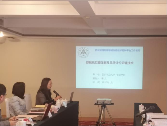 秦文教授代表参与单位对猕猴桃贮藏保鲜及品质评价关键技术的研究进行了总结和汇报,总结了近一年来农产品采后处理及品质控制研究团队对猕猴桃采后主要病原菌的分离鉴定、生物学特性、致病性的研究,以及比较了四川不同产地猕猴桃生物活性成分及功能活性。