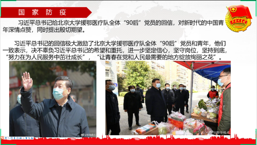 4月4日,食品学院团委组织部在腾讯会议举办了主题为“携手抗击疫情,砥砺爱国之志”的示范性团日活动,参与会议同学分别是团委组织部部门成员和2017级至2019级各小班团支书。活动旨在向小班团支书进一步传达新型冠状病毒的相关知识,认识到前线奋战抗疫英雄们的奉献精神。