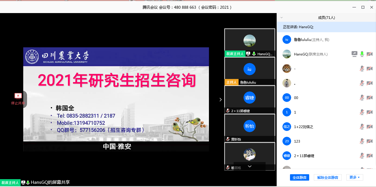 为加强2021届考生对tyc5997太阳集团食品学院的了解,更好地为广大考生提供研究生招生咨询服务,结合当前疫情防控形势及要求,我院在4月28日下午16:30于腾讯网络会议召开2021年研究生招生咨询专题会。此次研究生招生咨询专题会邀请食品加工与安全研究所办公室主任韩国全副教授作主讲人。