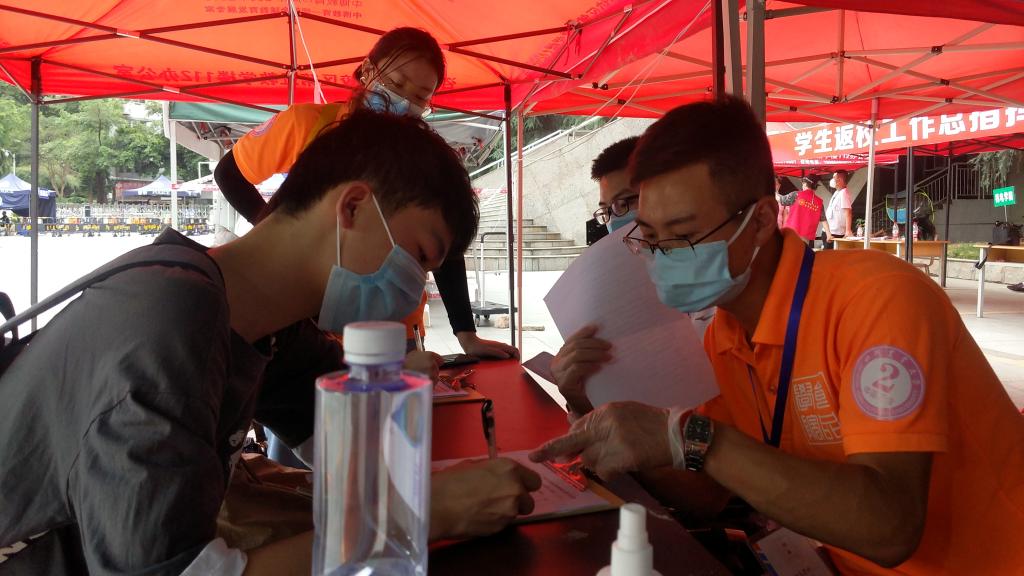 此前,为确保掌握学生返校意愿、健康(含亲属)状况和旅居史等情况,学院通过辅导员、班主任电话了解并参考健康打卡系统,精准摸排学生返校前14天健康信息、旅居史,认真审核返校申请,做好返校前的学生信息收集和登记工作。返校审接现场,学院老师与志愿者同学通过查验健康码、返校通行码、监测体温、返校风险评估等落实学生返校报到相关工作。经过5月16日-17日、5月19日-20日为期4天的高强度持续作战,截止目前,学院共计656名学生安全有序返校。