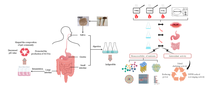 食用菌作为人类共知的佐膳佳品,以其独特的风味和合理的营养配比受到广大消费者的青睐,但如何科学充分利用该资源则成为当前研究热点。绝大多数食用菌需烹饪后食用,但食用菌经过不同烹饪方式处理后,其营养成分受到的影响方式及程度因烹饪方法和食用菌种类而异,因此,本课题组针对长根小奥德蘑进行了四种常见的家庭烹饪(煮、蒸、炸、微波)处理,利用体外模拟消化模型,首次系统全面的探究了不同烹饪方式与营养素的生物利用度及抗氧化活性的变化规律,便于针对性的采取保持技术对营养素实施有效的保护,科学合理地评价膳食矿物质和微量营养素的摄入量,指导食用菌的科学烹饪及加工。