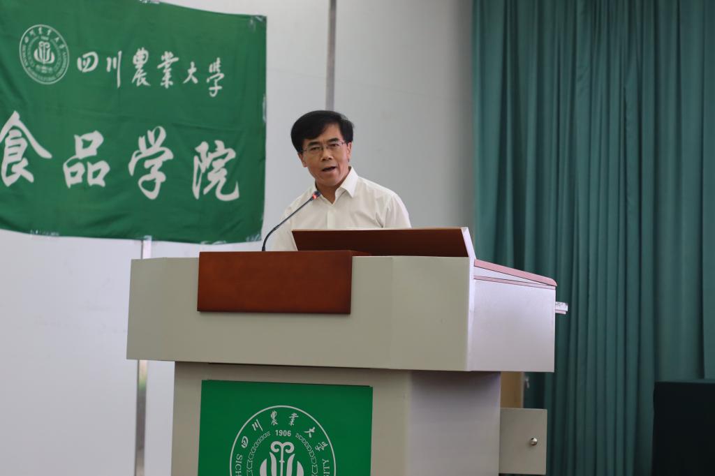 包装工程专业负责人叶劲松作为教师代表发言。他对同学们选择实力雄厚、蒸蒸日上的食品学院作为学习的地方感到欣慰。他通过自己任职30余年的经历,告诉同学们度过黄金般的大学四年时光最基本、最简单的真理就是“天道酬勤”。大学四年是整体素质的酝酿、发酵、成熟的阶段,他鼓励同学们在大学一定要广泛的学习,在未来的四年当中把自己打造成为不负青春、不负亲人、不负国家、不负民族的优秀的高素质人才。叶劲松代表食品学院全体教师激励同学们“我们有能力,你们能行!”