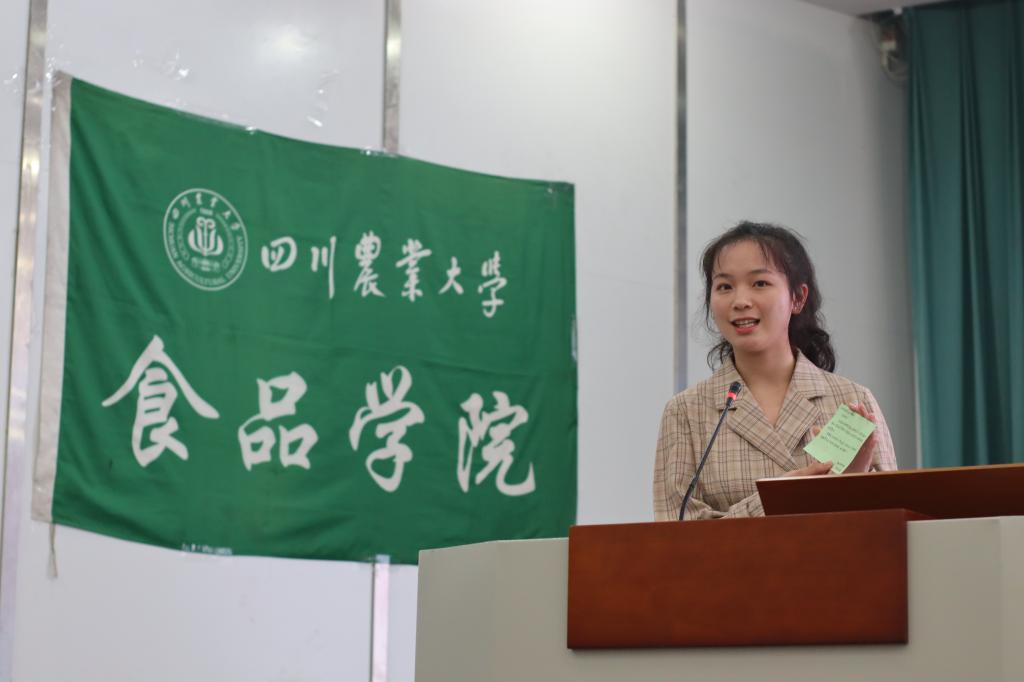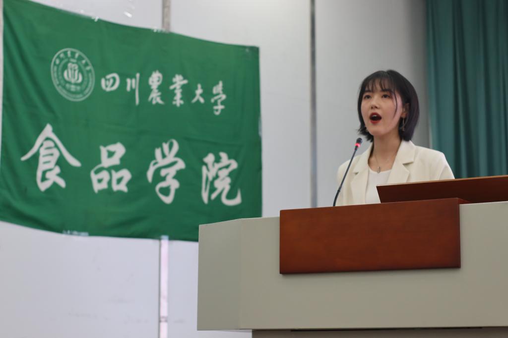 食品科学与工程专业2020级2班的林叶子代表2020级全体新生发起对理想的宣言:铭记“爱国敬业,艰苦奋斗,团结拼搏,求实创新”的川农大精神,秉承着“追求真理,造福社会,自强不息”的校训,继承传统,与时俱进,甘于奉献,做有理想、有担当的食品人。