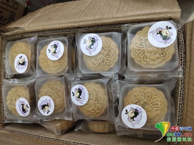 包装完成并贴好特制标签等待派送的月饼。中国青年网通讯员 王诗怡 供图