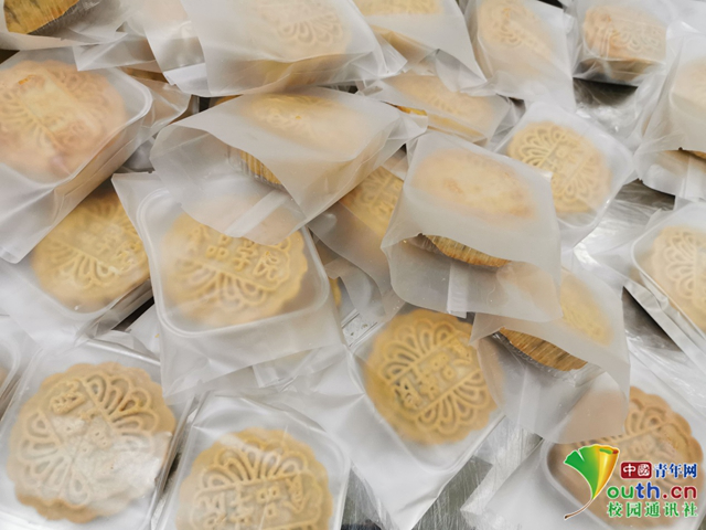 连夜赶制完成,等待封装的月饼。中国青年网通讯员 田彬琳 供图