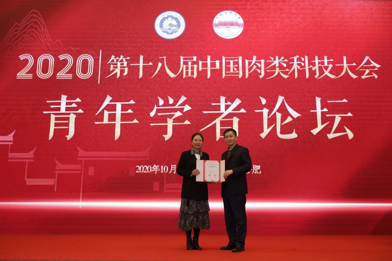 10月15日至17日,第十八届中国肉类科技大会在安徽合肥举行,科技部基础研究司原副司长郭志伟、中国畜产品加工研究会会长周光宏教授、合肥工业大学校长梁樑教授、中国肉类协会常务副会长兼秘书长陈伟、南京农业大学食品科学技术学院院长徐幸莲教授等来自国内外百余所高校、科研院所、企业等600余人参加了会议。我院教师曾珍博士受邀参会,并作了主题为“钙调蛋白酶2、20S蛋白酶体和组织蛋白酶B+L对宰后猪肉保水性的影响”学术报告。报告介绍了钙调蛋白酶、蛋白酶体和组织蛋白酶的基因转录水平、宰后活性变化和肌原纤维蛋白的含量变化及与猪肉保水性变化的相关性,进一步探讨蛋白酶解与宰后猪肉保水性的关系。