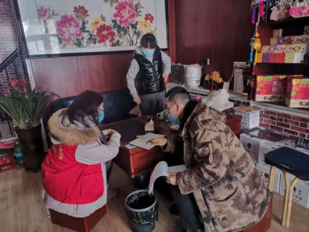 志愿者同学向商家宣传消毒防护知识