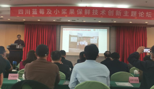 在论坛上,四川省科技厅小浆果产业链首席专家董顺文博士作“蓝莓产业高质量发展与科技协同创新”主题报告和成都包乐包科技有限责任公司创始人王焰作了“蓝莓及小浆果保鲜包装材料创新与应用”报告。