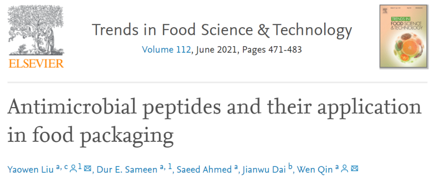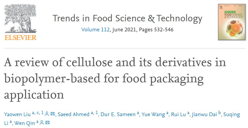 近日,食品领域国际顶级期刊《Trends in Food Science & Technology》(中科院SCI期刊分区1区top,2020年影响因子为11.007)先后在线发表了《纤维素及其衍生物在生物高聚物食品包装中的应用》(A review of cellulose and its derivatives in biopolymer-based for food packaging application)和《抗菌肽及其在食品包装中的应用》(Antimicrobial peptides and their application in food packaging)2篇论文,论文由食品学院农产品采后处理及品质控制研究团队的刘耀文副教授分别与两名巴基斯坦留学生Saeed Ahmed和Dur E. Sameen为共同第一作者完成,我校为第一作者和通讯作者的第一单位,秦文教授与刘耀文副教授同为通讯作者。