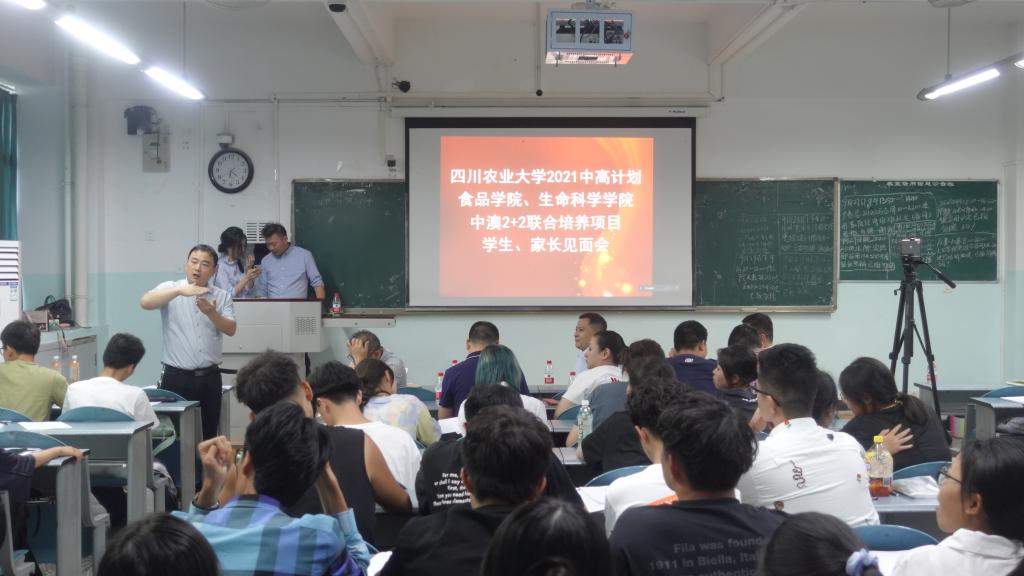9月28日下午,2021中高计划食品学院、生命科学学院中澳2+2联合培养项目学生、家长见面会在十教A210举行。食品学院副院长张志清、生命科学学院副院长徐怀亮、副书记朱长文、中高计划运营总监胡伟、运营副总监付超鹏、学术总监王昕、学校国合处慕容倜倜、学院国际合作事务秘书、中澳班班主任、全体新生和部分家长(线上)参加见面会。见面会由学院副院长张志清教授主持。