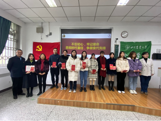 会上,食品学院党委书记秦文、副书记汤瑞瑞、专职组织员曾小波为每名预备党员送上了“政治生日礼包”,一张政治生日贺卡、一本党章、一枚党徽,共同见证新发展党员的成长历程。政治生日贺卡中注明了党员同志的入党日期,向党员同志表达“生日”的祝福。同时,“生日卡”还印有入党誓词,要求党员同志在今后的工作和生活中,时刻铭记入党誓词,牢记党的性质宗旨,积极履行党员义务,坚定理想信念,发挥共产党员的先锋模范作用。