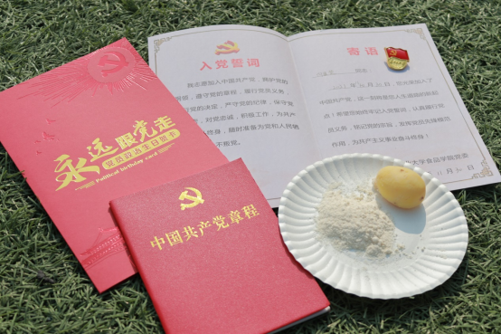 食工党支部关依然在活动结束后激动地说:“这是非常难忘的一天,除了光荣,我更体会到沉甸甸的责任。时不待我,青春如歌,我将牢记初心,不辱使命,在生活实践中展现新“食”代青年党员风采!”