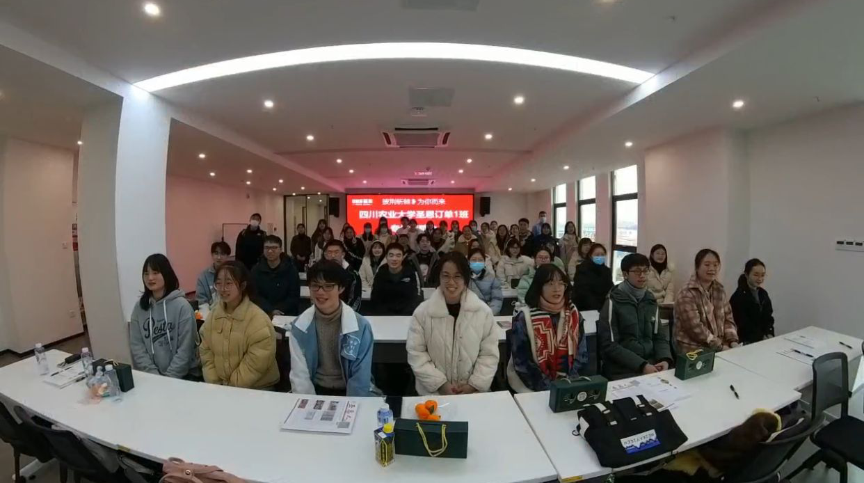 参观结束后,“圣恩订单班”的选拔招聘活动正式开始。圣恩集团人力资源部主管邱昌燕、招聘专员邓瑶首先为同学们介绍了圣恩集团的企业理念、现状及文化。随后同学们分为四组在圣恩集团人力资源部的面试官们面前参与了一场包括简历制作、自我介绍、无领导小组讨论等流程的真实实际面试,最终22位同学成功入选本届“圣恩班”。