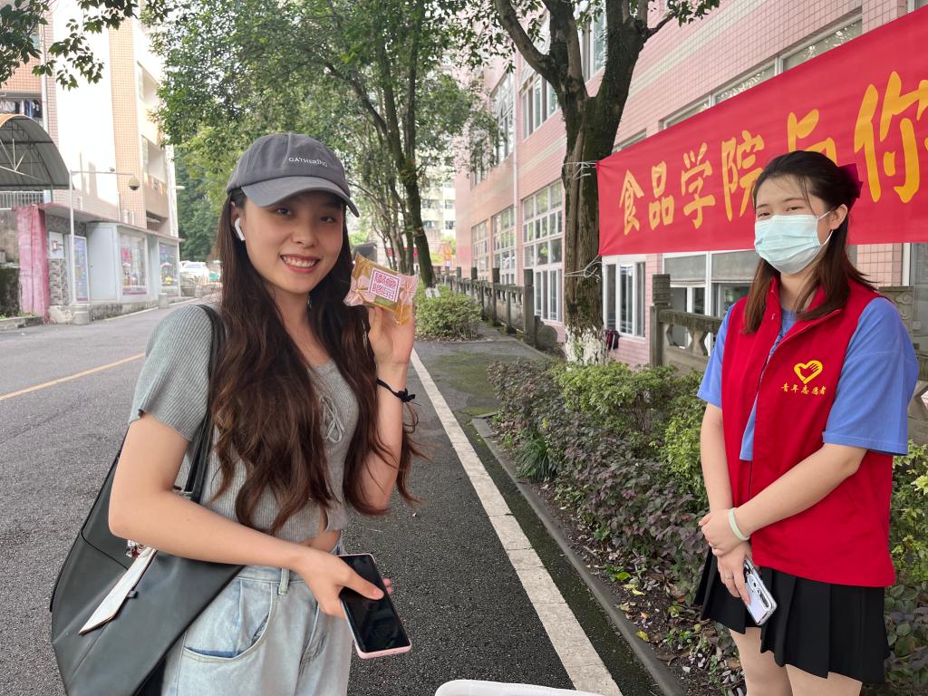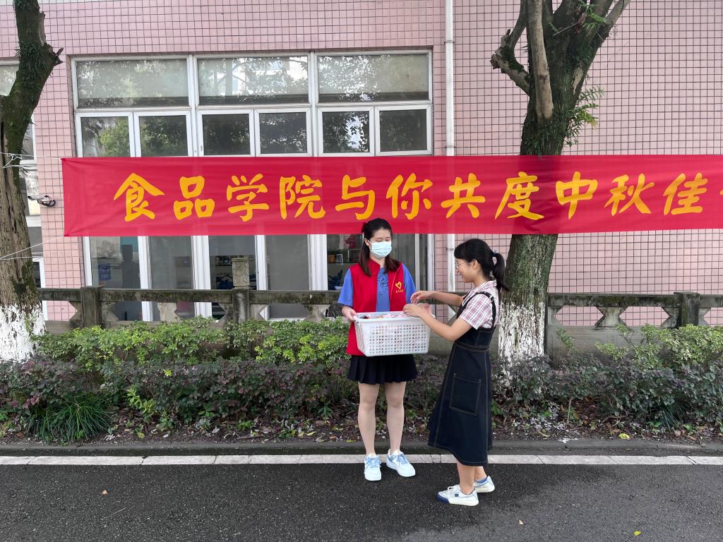 9月10日上午10点30分,志愿者准时在老区食堂门口和新校区第二住宿部主干道派送月饼,不到1个小时,月饼就被同学们领取完毕。2021级食质专业的苗晨曦激动地说:“在疫情防控的关键阶段,在这个没有家人陪伴的中秋节,能够领到学院制作的月饼,感受到学院的关怀,十分贴心,非常感动,觉得在学校就像在家一样!”。