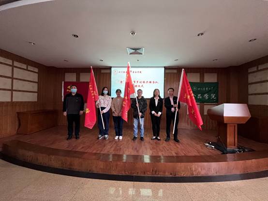 会上,为充分发挥基层党组织的战斗堡垒作用和先锋模范带头作用,学院党委组织各支部成立“‘食’代先锋乡村振兴服务队”,学院党委委员为8个教工党支部和研究生党支部授旗,激励全体党员将小我融入大我,把使命放在心上,厚植“三农情怀”,增强推进乡村振兴战略的使命感。