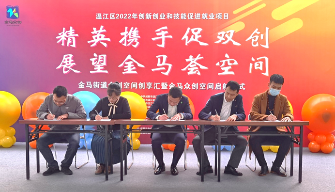 会上,食品学院与金马众创空间达成合作协议,未来将会依托温江金马街道辖区内食品加工产业集群优势,以金马众创空间为阵地,通过创业大赛、创业沙龙、政策宣传、导师入企、投融资服务等形式,为学生创新创业项目入驻或项目发展提供全方位支持,为创业者及初创企业提供专业化、多元化的孵化服务。