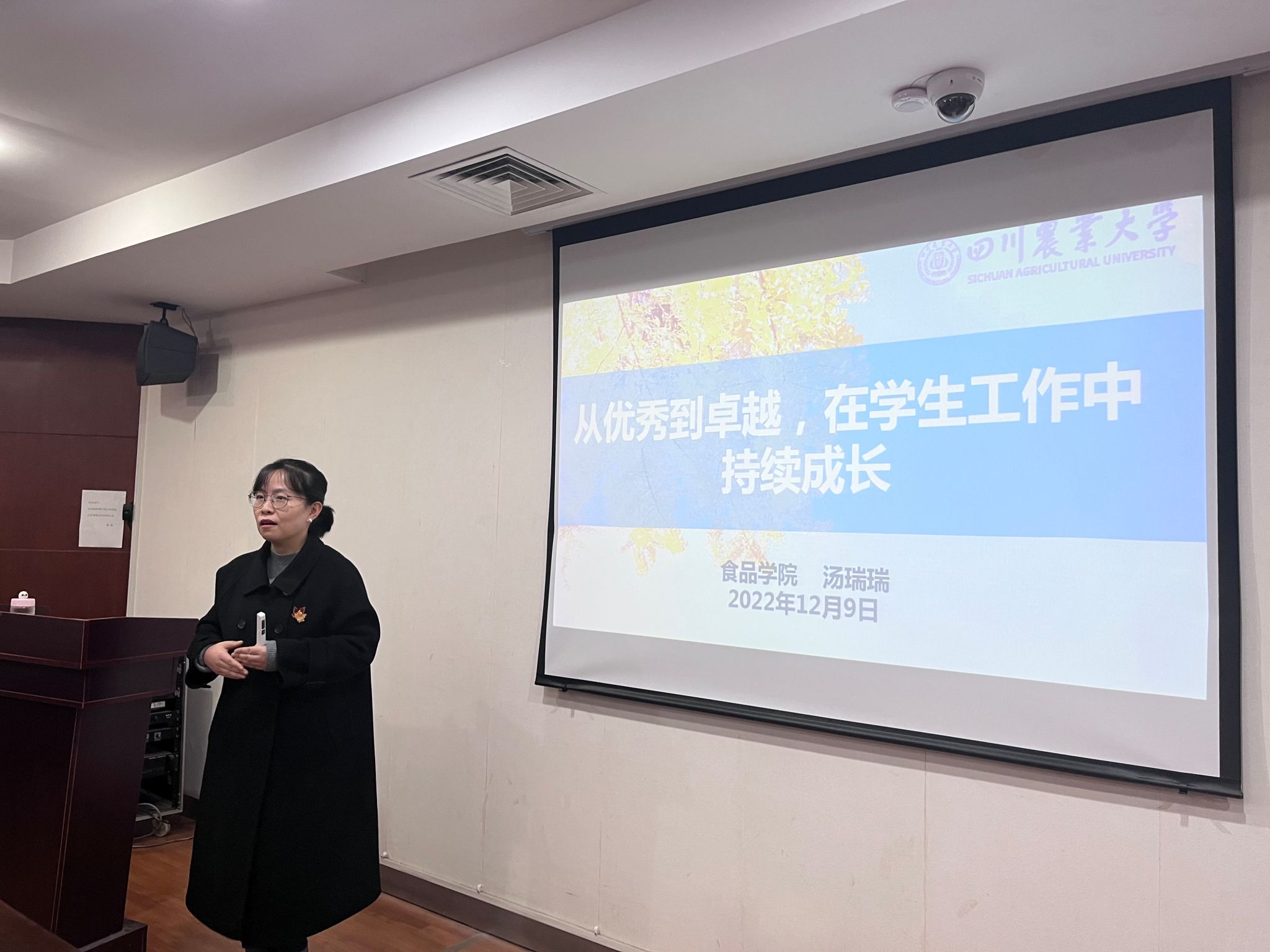12月9日下午,食品学院党委副书记汤瑞瑞以“从优秀到卓越,在学生工作中持续成长”为题,向小青马们解析学生骨干的成长路径。