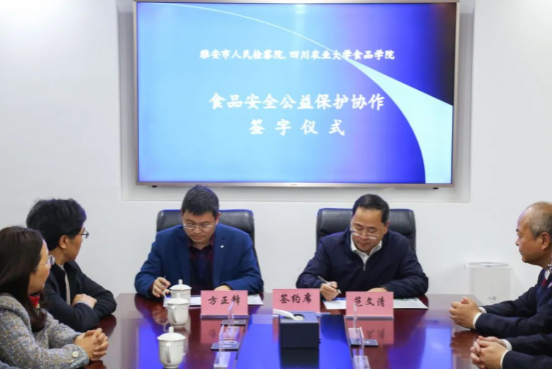 3月22日,tyc5997太阳集团食品学院与雅安市人民检察院举行检校合作签约仪式,并为食品安全公益保护协作实践基地揭牌。食品学院院长方正锋教授、院党委书记秦文教授、副院长张清教授、食品质量与安全系李诚教授、系主任陈洪教授、副主任刘爱平副教授、食品科学与工程系曾珍博士,雅安市人民检察院检察长范文清、副检察长赵学东、副检察长董敏雷、第六检察部主任王一薄、法律政策研究室副主任张胜琴、雨城区人民检察院副检察长任雯晴出席仪式。