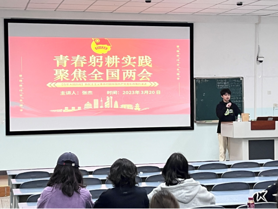 驻班党员在班级进行“两会”精神宣讲