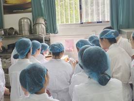 活动伊始,食品学院副院长张清教授代表学院向甜星的技术老师表示欢迎和感谢,对在场学院提出学习要求。老师在培训期间为同学们讲述步骤并亲自示范,打发黄油、加入粉类、搅拌成团、冷藏、擀薄、压模,烘烤,最终曲奇酥松可口、外观可爱。在此过程中,烘焙俱乐部的同学们认真聆听,做笔记,给关键步骤录制视频,积极提问。面团制作完毕后,同学们热情高涨,纷纷发挥自己的创作能力与想象力,制作出别具特色的曲奇。