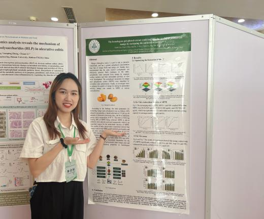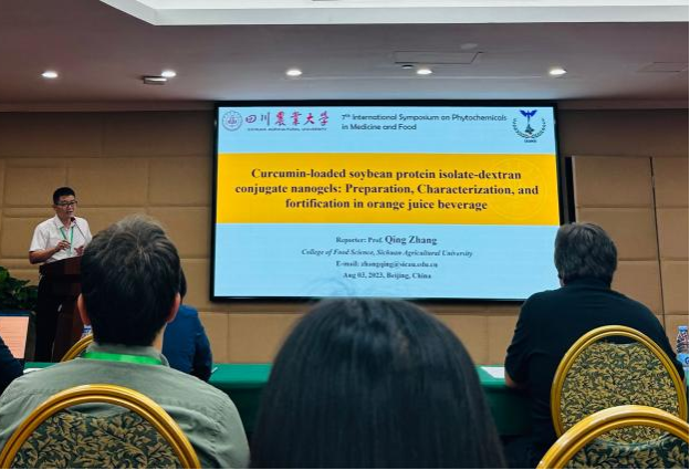 张清教授受邀在第四会场作了题为Curcumin-loaded soybean protein isolate-dextran conjugate nanogels: Preparation, characterization, and fortification in orange juice beverage的大会报告,详细介绍了负载姜黄素的大豆分离蛋白-葡聚糖结合纳米凝胶的制备工艺及应用于橙汁中充当营养强化剂的潜在价值。之后在第六场会议中受邀担任主持,介绍了来自中国、沙特阿拉伯和瑞典等国的专家进行报告。此外,学院博士研究生叶麟、黄彭、魏丽娟和张琴秋,以及硕士研究生刘信之作了相关海报展示,介绍了团队近年来在果蔬采后保鲜、农产品品质提升等方面的最新研究成果。