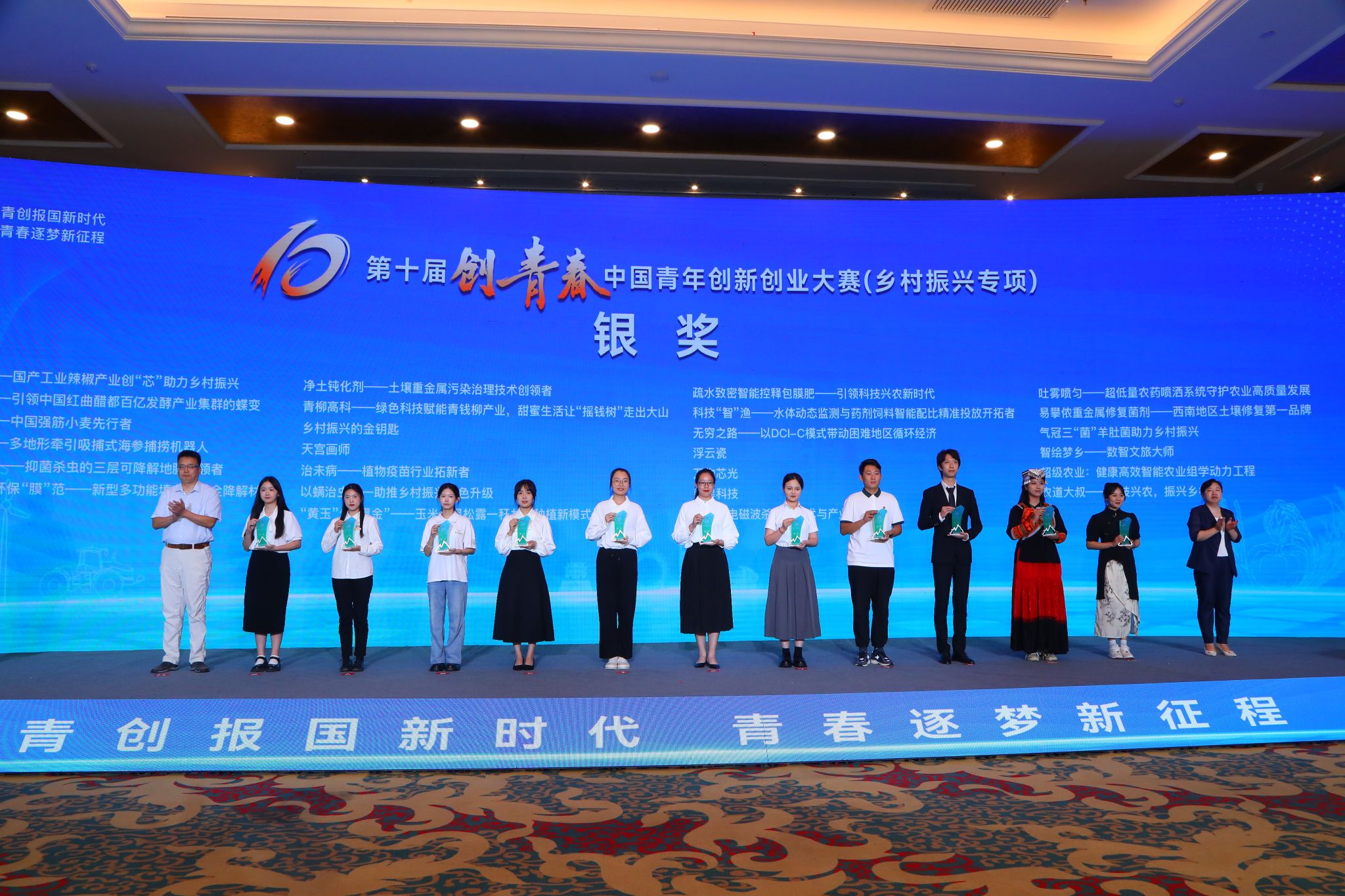 “创青春”中国青年创新创业大赛是国内最具权威和影响力的创新创业比赛之一,是共青团服务青年创新创业的品牌项目。本届大赛以“青创报国新时代·青春逐梦新征程”为主题,重点关注先进种植养殖技术、农产品加工及销售、农业社会化服务、乡村休闲旅游、预制菜等领域相关产业,自今年6月启动以来,共吸引全国4300余个项目参赛,经过初赛、半决赛、总决赛的激烈角逐,最终大赛共产生金奖13个、银奖26个、铜奖39个和优秀奖48个。