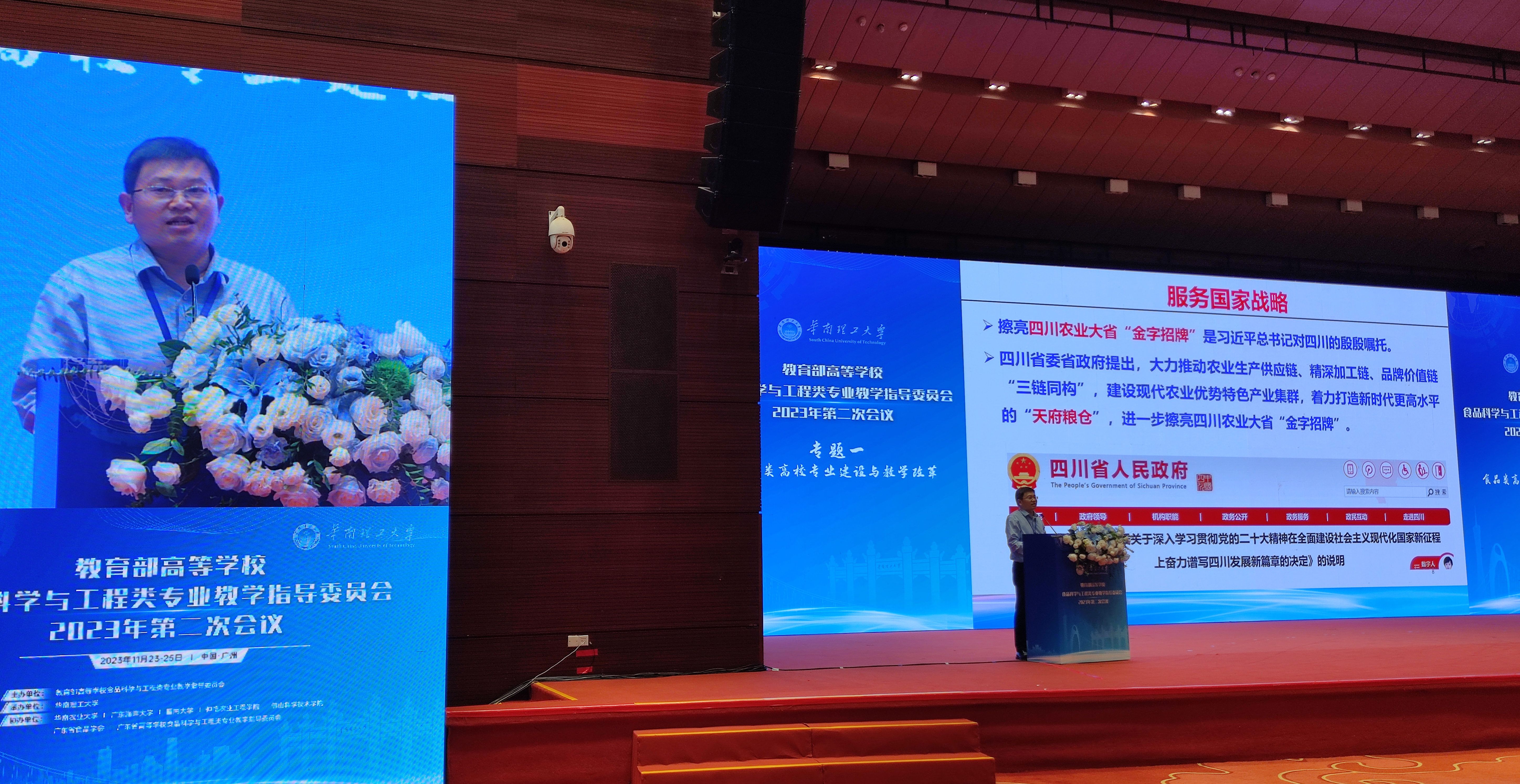 2023年11月23日-25日,“教育部高等学校食品科学与工程类专业教学指导委员会2023年第二次会议”在广州召开。本次教育部高等学校食品科学与工程类专业教学指导委员会主办,华南理工大学承办,华南农业大学、广东海洋大学、暨南大学、仲恺农业工程学院等单位共同协办,包括中国工程院朱蓓薇院士、金征宇院士等在内的800多人参加。教指委委员、食品学院党委书记秦文教授,院长方正锋教授,党委办主任胡敏伦应邀参会。