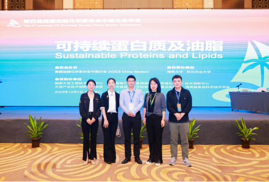 12月3-5日,由美国油脂化学家协会中国分会主办、海南大学和东北农业大学承办的2023第四届美国油脂化学家协会中国分会(CNAOCS)年会在海南顺利召开,来自国内外的500余位师生代表参会。中国工程院李培武院士、谢明勇院士,中国科学院吴奇院士、骆清铭院士等出席会议,会议由中国分会主席、东北农业大学首席教授江连洲主持。食品学院副院长张清教授、敖晓琳副教授、周曼副教授、崔强博士、于洁博士受邀参会。