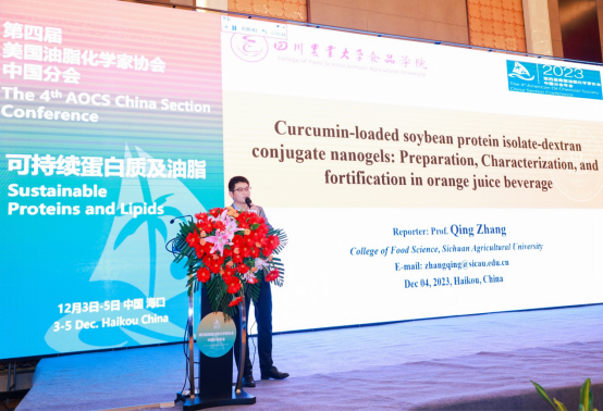 CNAOCS旨在促进中国现代油脂和蛋白质领域的科学研究、技术创新、产业发展和国际合作,本届年会的主题是可持续蛋白质及油脂。张清受邀以“负载姜黄素的大豆分离蛋白-葡萄糖纳米凝胶:制备、表征、和在橙汁饮料中的强化”为题作大会报告,详细介绍了姜黄素的生物活性以及健康功效,并将负载姜黄素的大豆分离蛋白-葡萄糖轭合物纳米凝胶这一复合材料成功应用与橙汁饮料的营养强化。研讨会期间,食品学院教师与参会代表进行了广泛交流。