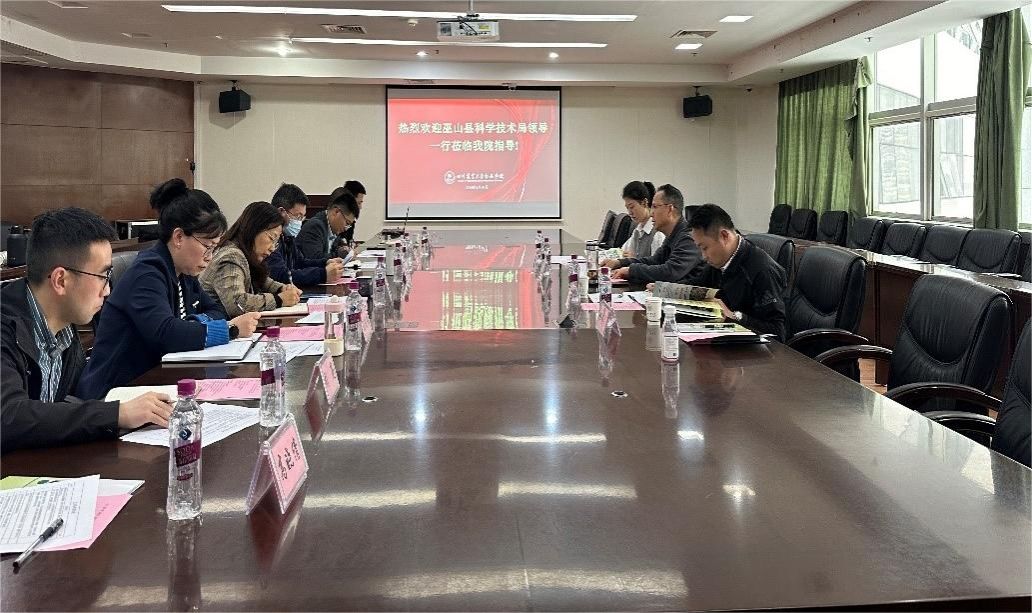 4月10日下午,巫山县科学技术局党组书记、局长金明带队来我院座谈交流。学院党委书记秦文、院长方正锋、党委副书记汤瑞瑞、副院长张清及科技开发办相关负责人参加交流会,会议由秦文主持。