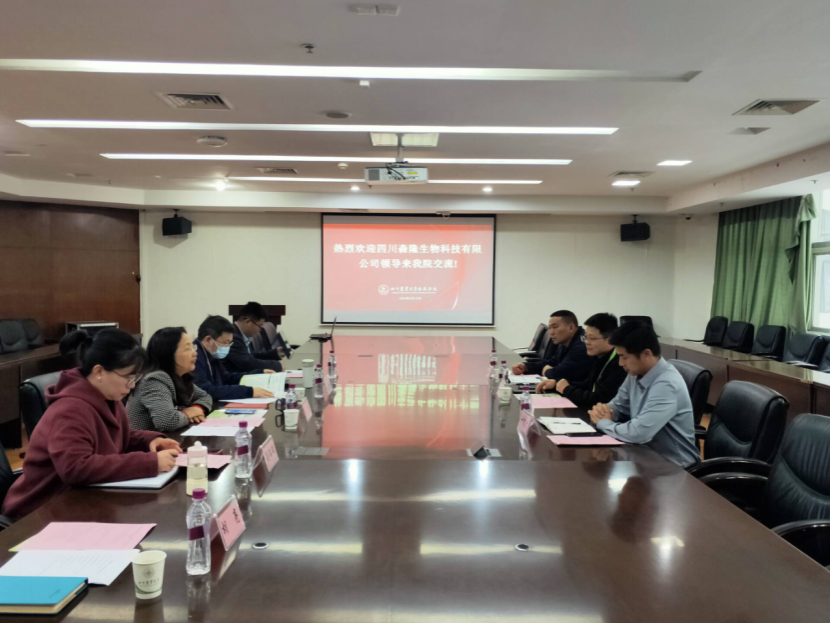 4月10日上午,四川森隆生物科技有限公司副总经理曾剑飞、管理部经理叶寒青一行来食品学院进行访问交流。学院党委书记秦文、院长方正锋、党委副书记汤瑞瑞、副院长张清及科技开发办相关负责人参会,会议由秦文教授主持。