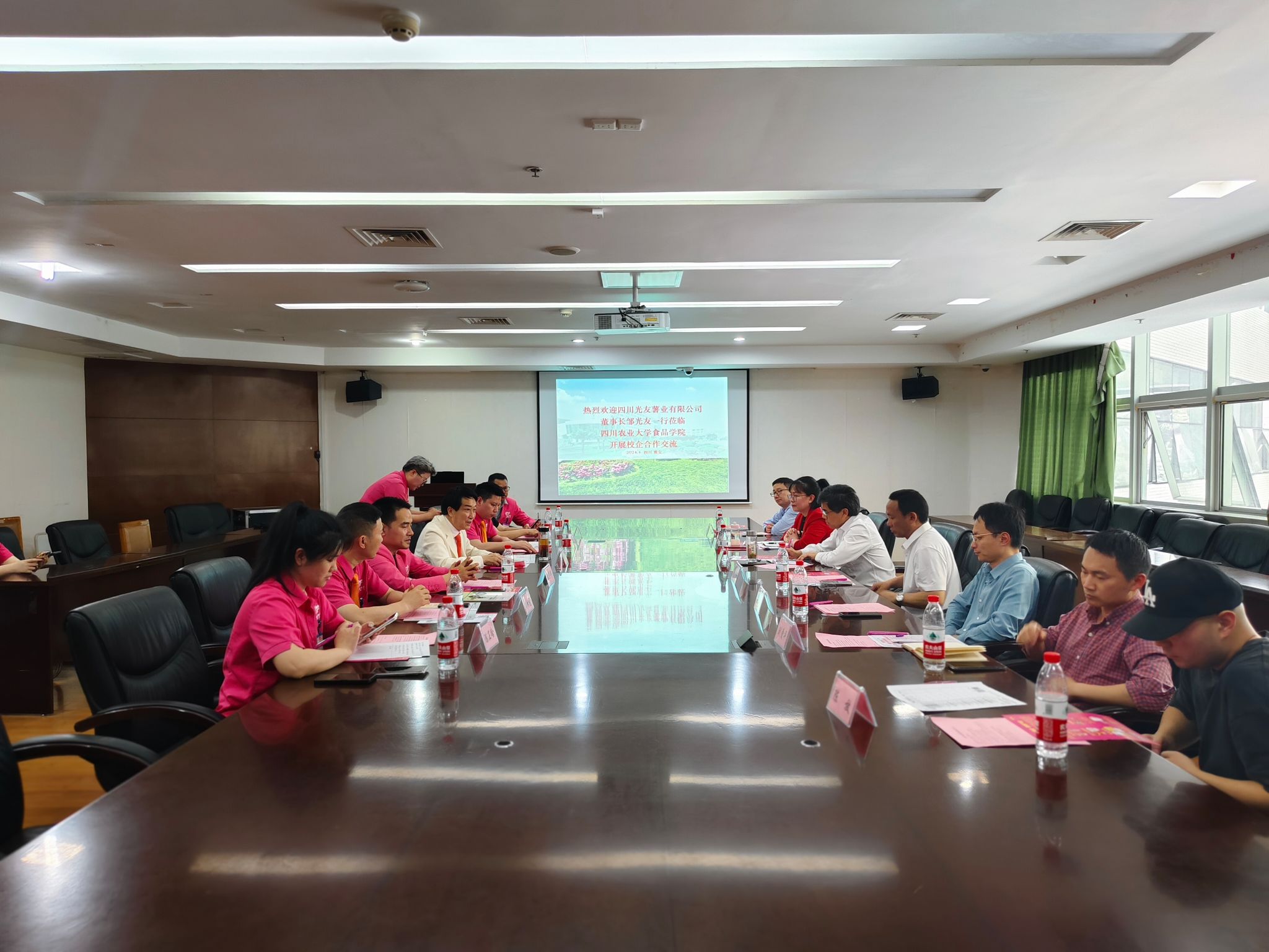 为进一步加强校企合作,深入开展产教融合,创新人才培养模式,4月25日下午,四川光友薯业有限公司董事长、知名企业家邹光友一行莅临我院在综合楼214召开校企合作座谈会。雅安市政协副主席李诚,tyc5997太阳集团工会专职副主席、教代会副主席杨志钢,学院党委副书记、纪委书记汤瑞瑞及各系室主任和党委办老师出席会议。会议由汤瑞瑞主持。