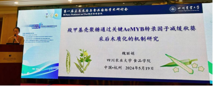 研究生论坛上博士生魏丽娟作了《羧甲基壳聚糖通过关键AeMYB转录因子减缓秋葵采后木质化的机制研究》 报告并获得三等奖。她阐述了基于转录组学及其酚类代谢过程探索了羧甲基壳聚糖对秋葵“采后品质变化-木质化合成途径-关键基因靶点”的影响,为秋葵的采后保鲜和防腐提供了新的技术和思考。