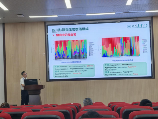 食品学院刘爱平副教授受邀作题为“四川麸醋研究进展”的学术报告。刘爱平介绍了四川麸醋的工艺特点、不同季节醋曲发酵群落与风味关联性及腐败菌株的快检技术,同时介绍了课题组近几年的相关研究成果。刘爱平还向与会专家介绍了食品学院科研平台和人才培养情况,进一步提升了食品学院的学术影响力,助力食品学院学科和专业发展。