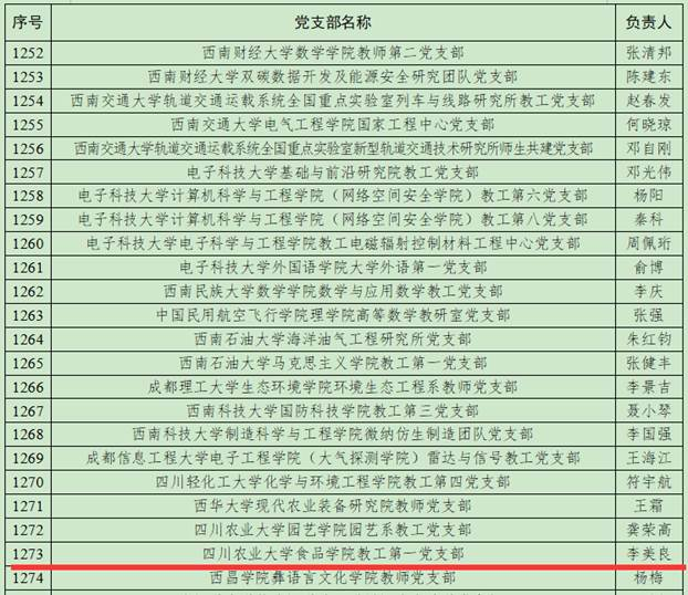 近日,教育部思想政治工作司公布全国高校“双带头人”教师党支部书记“强国行”专项行动遴选结果,食品学院食品科学与工程教工第一党支部被确定为“强国行”专项行动推荐单位。