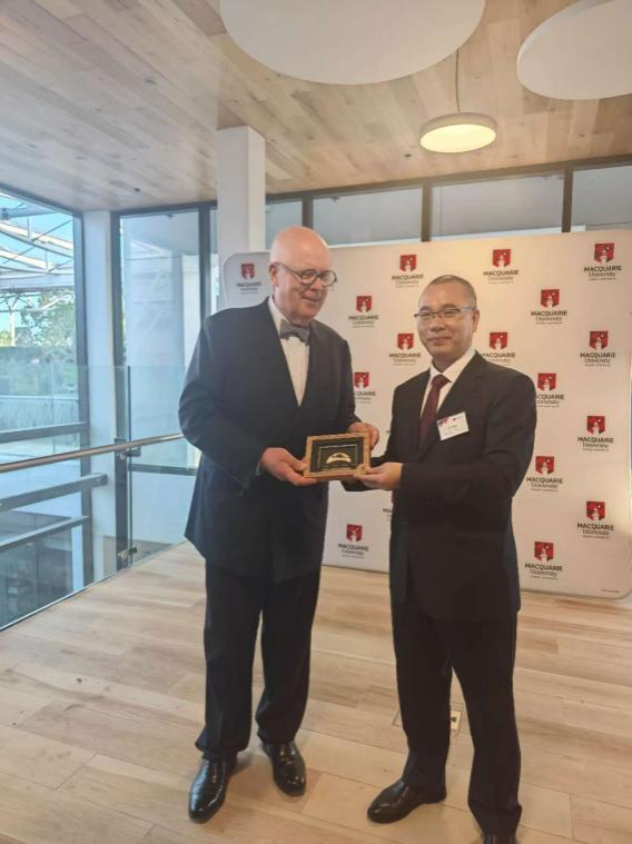 副校长丁林教授与麦考瑞大学校长布鲁斯•道顿教授亲切交流