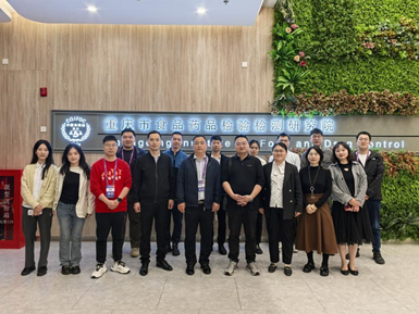 我校校友、重庆市食药检院高级工程师李莎和重庆市药品技术审评查验中心副主任周利茗以及其他相关负责人首先对来访师生表示热烈欢迎,就检测院的科室设置、主要仪器设备、科研成果和业务开展等方面作了详细介绍。随后,双方就食品安全检测技术发展趋势、食品安全风险防控、风险预警体系构建进行了深入探讨,并期待能够发挥双方的平台优势,在共建产教融合人才培养基地、联合开展科学研究等方面达成共识。