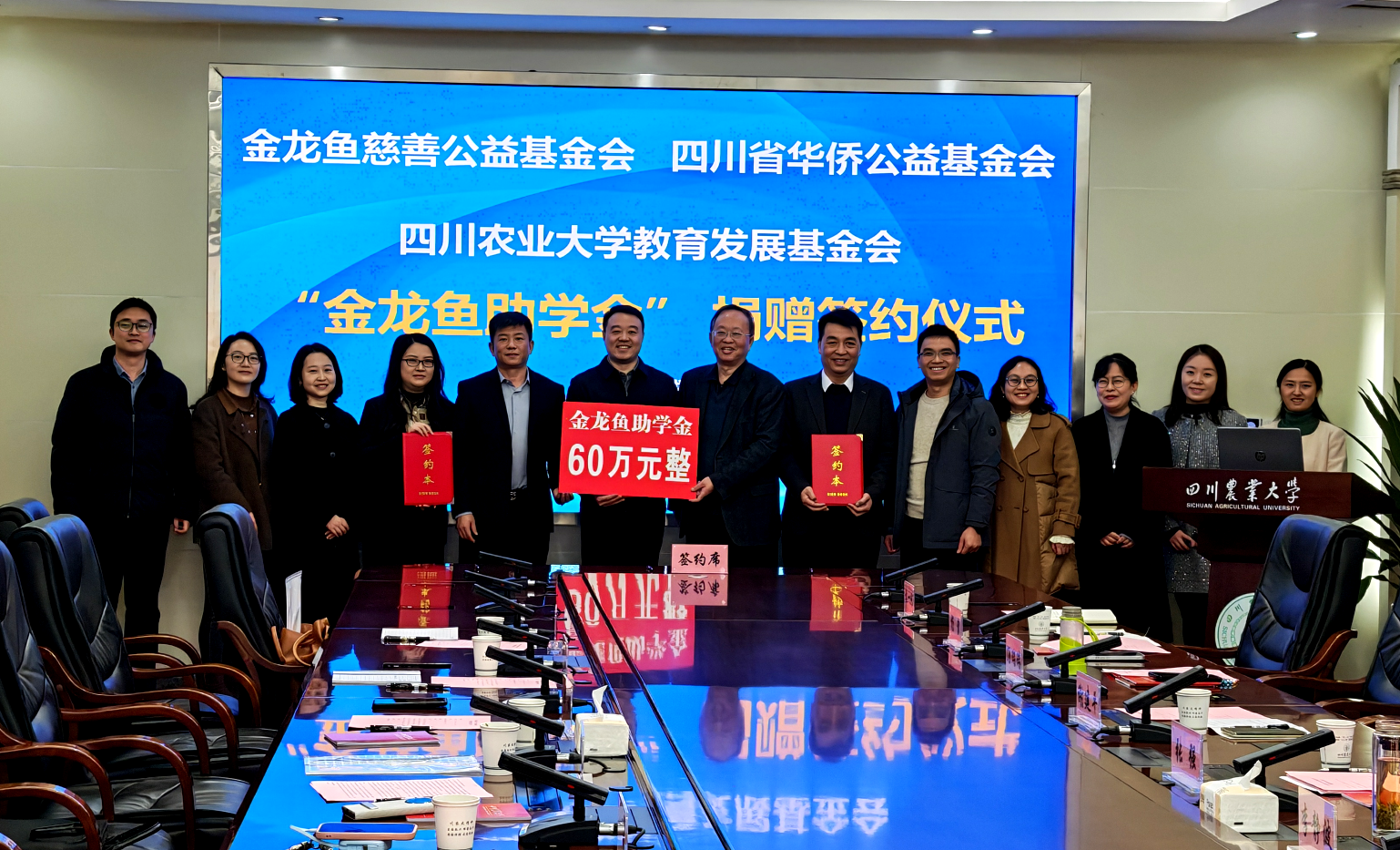 在签约仪式上,李静波、王振荣、何坤分别代表三方签订了《“tyc5997太阳集团金龙鱼助学金”捐赠协议》。根据协议约定,金龙鱼慈善公益基金会和四川省华侨公益基金会从今年起连续三年每年捐赠20万元在我校设立“金龙鱼助学金”,用于资助我校食品学院、机电学院、动物科技学院相关专业品学兼优且家庭经济困难的学生,每年评选50名,4000元/生/年。