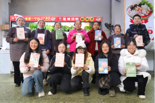 妇女节当日,志愿者们分组前往办公室、食堂、宿舍区等地,将礼品袋送至教职工手中。在教师办公室,女老师们对收到的礼物表示惊喜,并夸赞饼干的造型精巧;食堂后厨里,志愿者为正在备餐的女性职工递上礼物,对方擦拭双手郑重接过,眼角笑意盈盈;宿管阿姨捧着礼包袋,连声道谢:“孩子们有心了!”每一份礼物背后,都是志愿者躬身劳作的诚意,更是整个校园对“女性力量”的真诚礼赞。