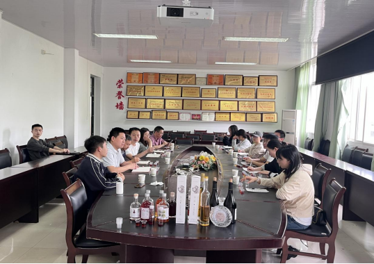 4月22日上午,贵州习酒股份有限公司范奇高主任、姚尚杰高级工程师带队一行7人来到tyc5997太阳集团食品学院,同畜产与发酵食品加工及安全团队进行深入交流,双方围绕果酒行业发展、人才培养及校企合作等议题展开深入探讨,为未来产学研融合奠定基础。