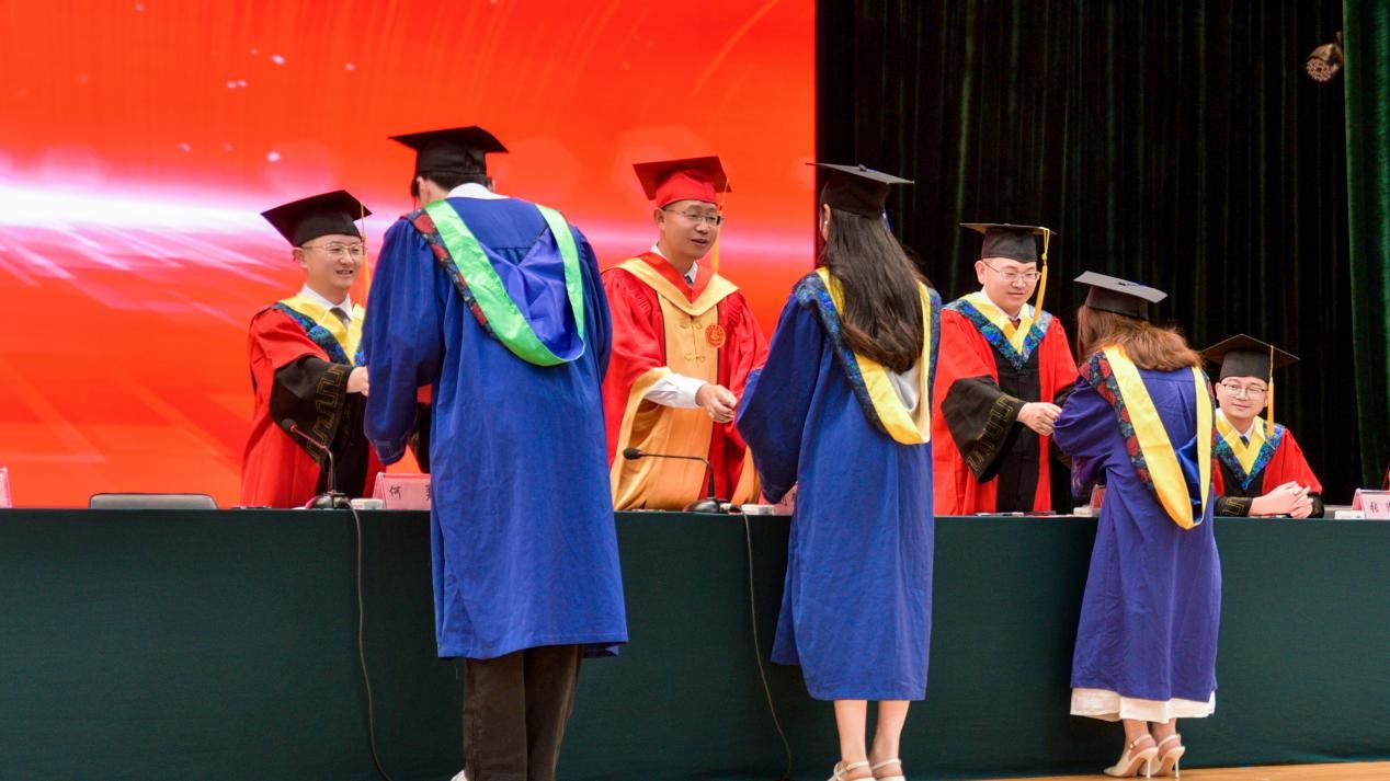 随后,汤瑞瑞宣读优秀毕业研究生、优秀研究生毕业论文、优秀大学毕业生及优秀本科毕业论文获得者名单。各领导老师为获奖学生颁发荣誉证书,肯定他们在学业道路上的拼搏与坚持,期待他们在新征程中继续以榜样力量照亮前行之路。