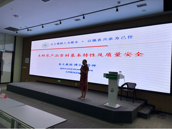 此次讲座以“生鲜农产品食材基本特性及质量安全”为题,秦文结合自身多年的科研成果与行业洞察,从生鲜食材的源头特性出发,系统剖析了农产品在采后流通环节中的生理生化变化、主要质量安全风险来源及关键控制点。同时,她还向企业一线管理及品控人员传授了科学、高效的质量管理方法和先进的保鲜技术知识,为企业提升供应链食品安全保障能力提供了强有力的理论支持和实践指导。通过此类高水平的专题讲座,不仅帮助企业解决了生产运营中的实际难题,也进一步彰显了我院在食品安全与质量控制领域的专业权威性和社会影响力。
