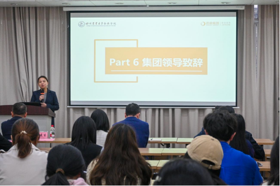 方正锋在致辞中深情回顾了“德康菁英班”自创办以来的发展历程,他指出,近年来校企双方均实现了跨越式发展:德康集团成功在香港主板上市,并建成了代表国际先进水平的现代化食品加工厂,实现了从养殖到食品全产业链的战略升级;同时,食品学院也成功获批农业农村部农产品加工与营养健康重点实验室和四川省首个食品科学与工程一级学科博士点,并建成了完整的肉品加工中试车间,形成了从本科到博士的完整人才培养体系。他强调本届菁英班的启动是双方强强联合、顺应时代需求的必然结果,标志着校企合作进入了崭新的阶段。