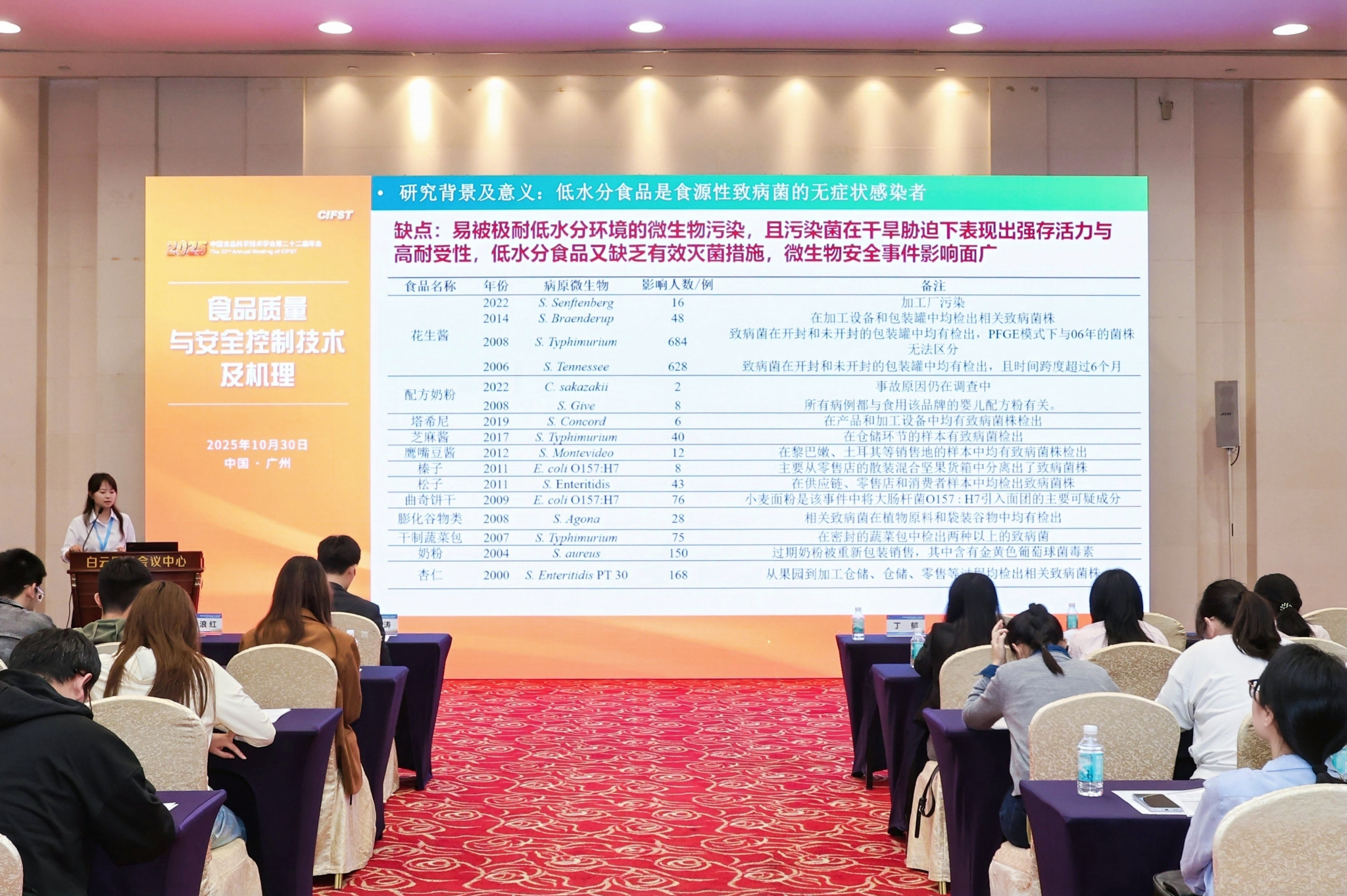 学院师生积极开展学术分享。刘书香教授主持了“食品质量与安全控制技术及机理专题会”,并作了“花生制品中脂肪保护肠炎沙门氏菌的机制研究”的专题报告。报告分享了对上世纪六十年代就存在的“脂肪保护学说”的进一步科学化探索,以及在低水分食品质量控制领域所取得的阶段性成果。2023级食品科学与工程专业本科生孙喆能进行了海报展示与讲解,作为唯一本科生收录的成果获得了评委的高度认可。
