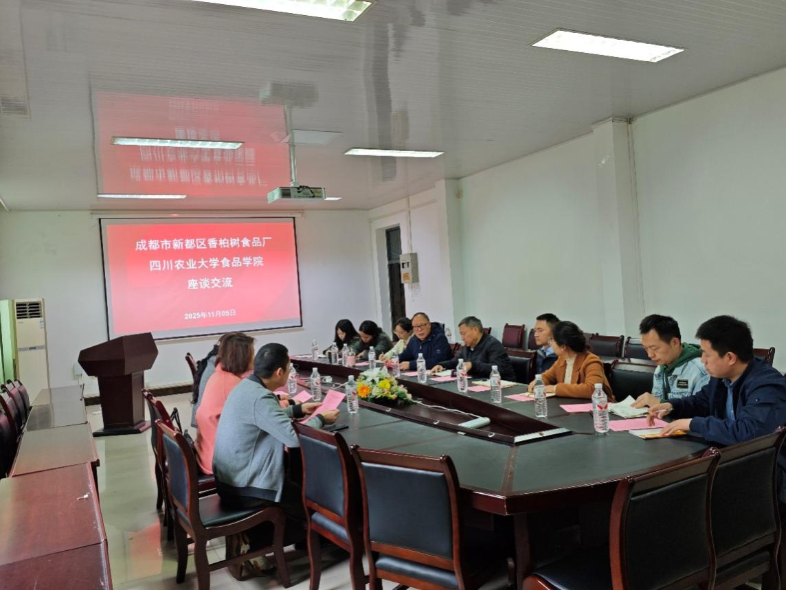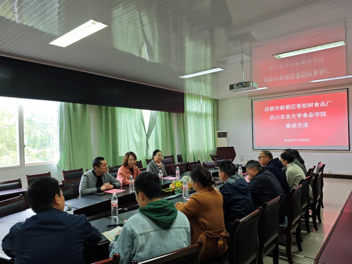 为推动食品科教与产业前沿深度融合,探索产教融合新路径,11月5日,四川省成都市新都区香柏树食品厂总经理陈美莺、营销总监童宇、品控总监付连波一行莅临tyc5997太阳集团食品学院开展座谈交流。食品学院畜产与发酵食品加工及安全团队刘书亮教授、杨勇教授、刘爱平教授等参与交流。